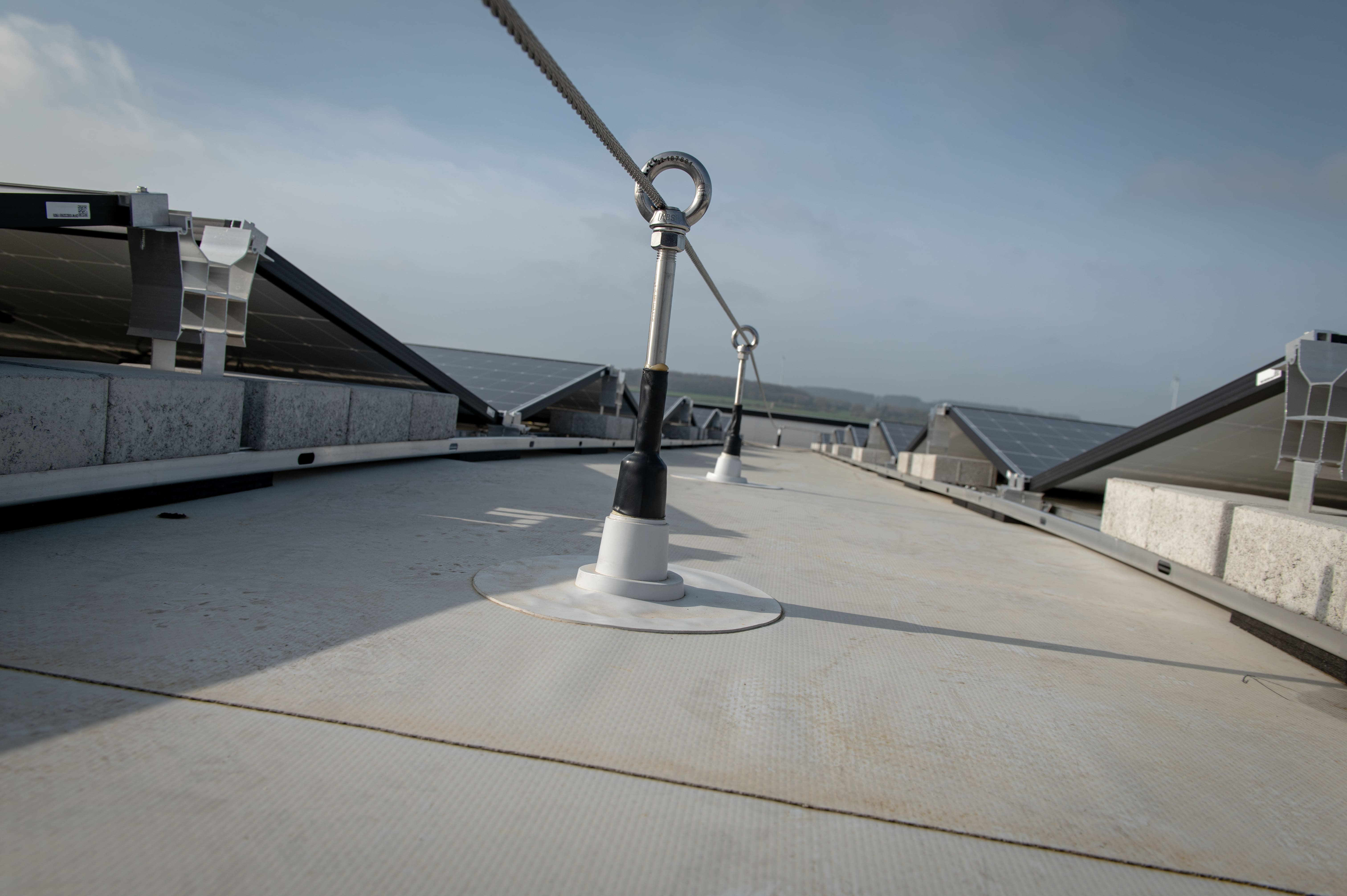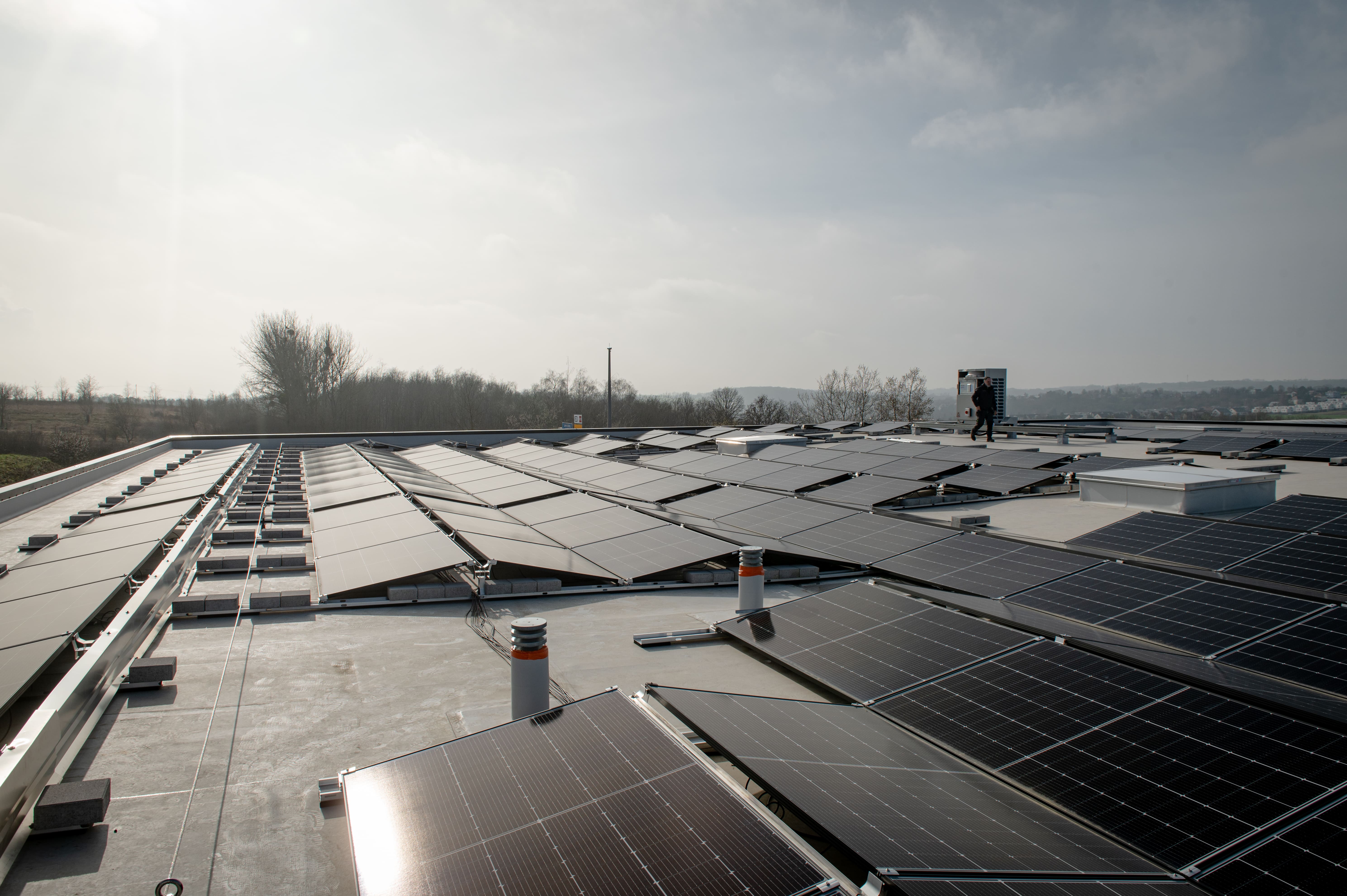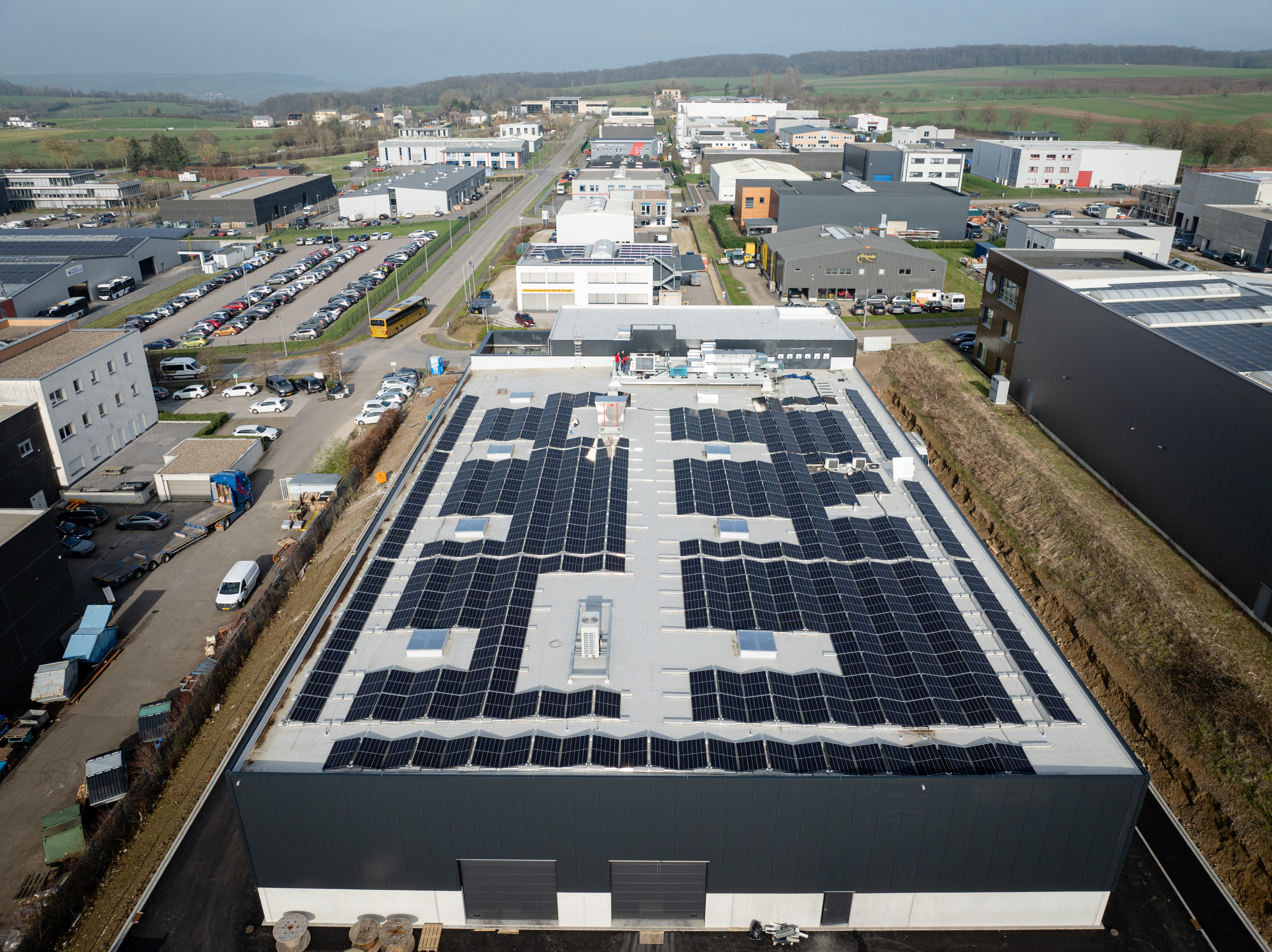 Das Dach der Lagerhalle wurde mit Photovoltaik-Paneelen gedeckt, die in direktem Kontakt mit der Abdichtungsbahn standen.
