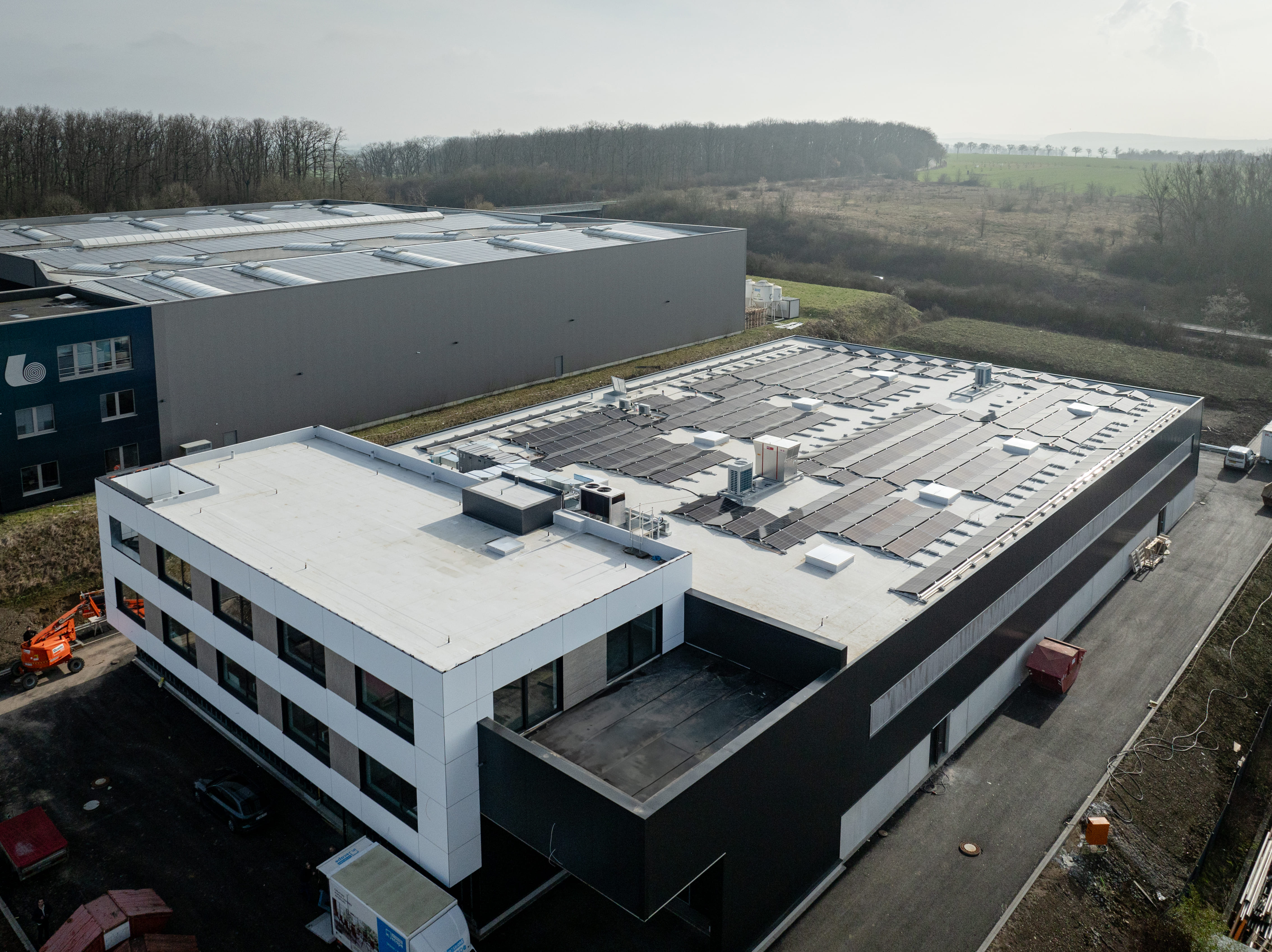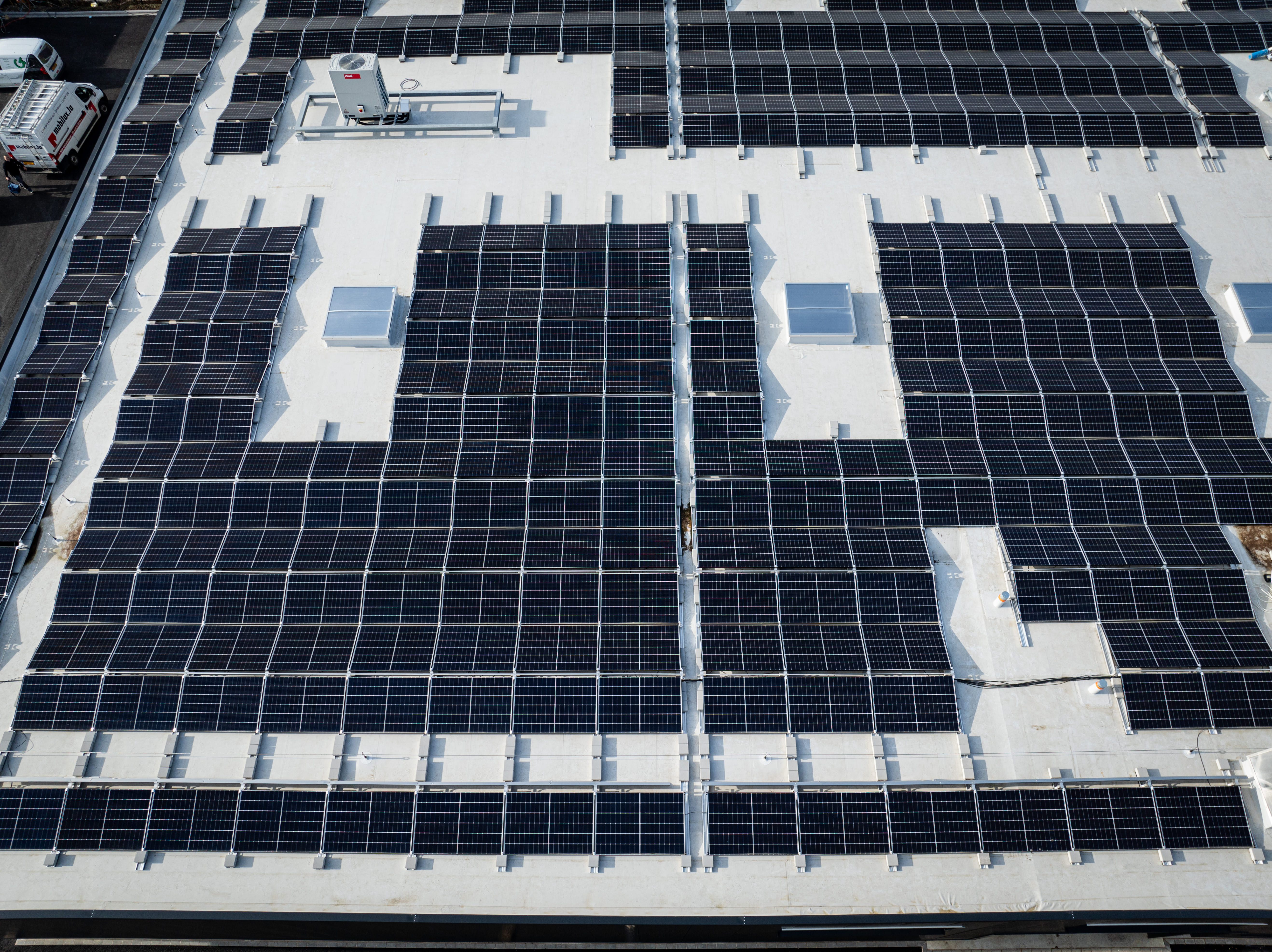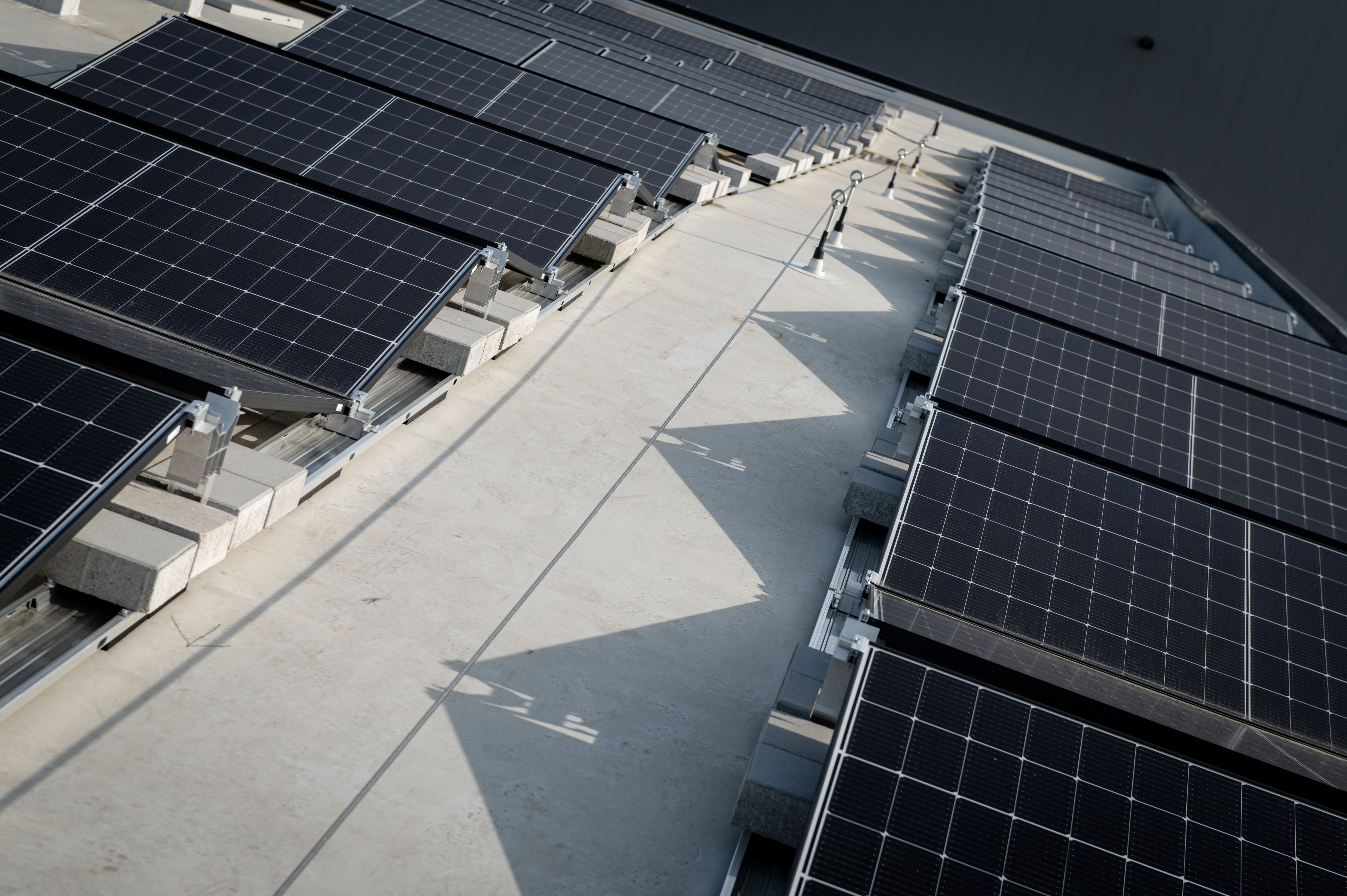 Das Dach der Lagerhalle wurde mit Photovoltaik-Paneelen gedeckt, die in direktem Kontakt mit der Abdichtungsbahn standen.