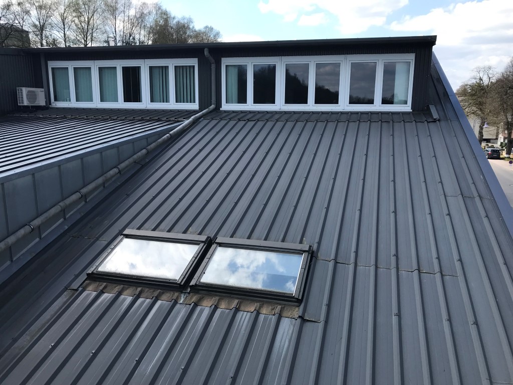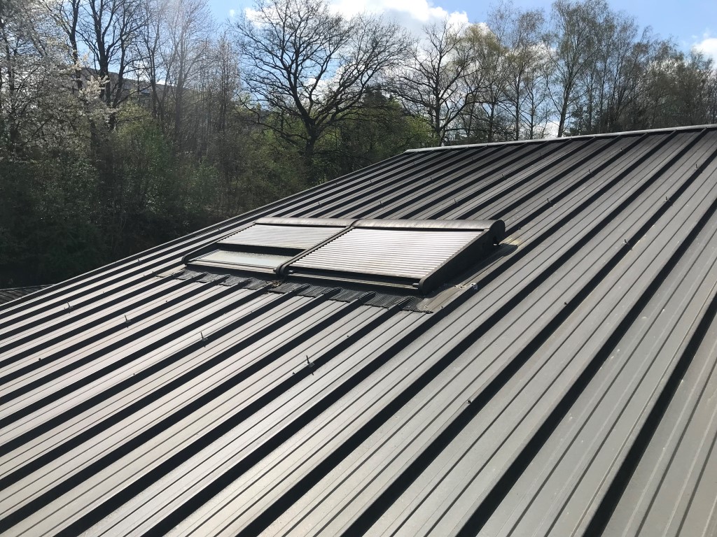 Dieses ursprünglich aus Metallblechen bestehende Dach wies hinsichtlich seiner Wasserdichtigkeit und Isolierung Schwächen auf. Um die Energieeffizienz des Gebäudes zu verbessern, haben wir eine 50 mm dicke PIR-Isolierung installiert.